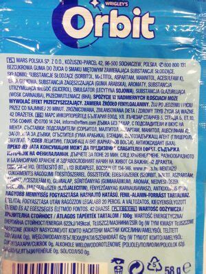 Web Ingredients, Allergens, Additives, Nutrition Facts, Labels, Origin Of Ingredients And Information On Product Orbit Peppermint